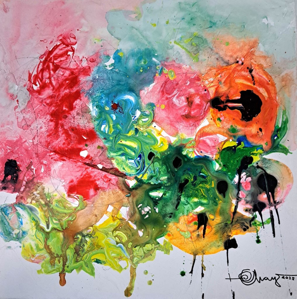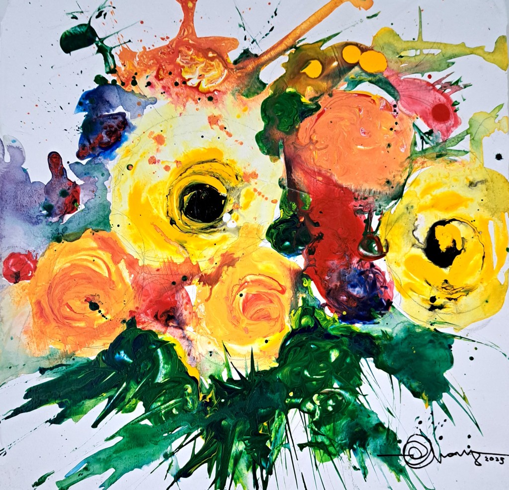 She waited a few weeks to ask me to paint her flowers so she can hang them in the living room. “Make me red ones and blue ones and yellow ones,” she said. “I’ll buy the wood and canvas.”